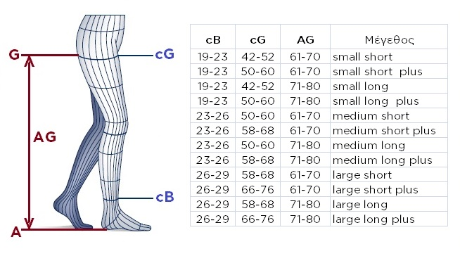 - cB: Ankle circumference, 3 cm above the ankle bone (the narrowest part).